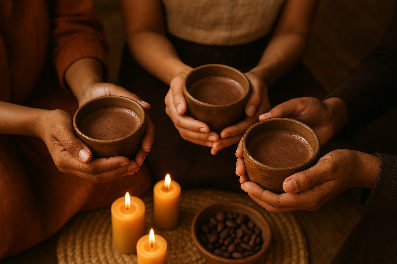 Teilnahmegebühr: 69 € für Verbindung, Yogapraxis, Kakaozeremonie und Mantra & Stimme